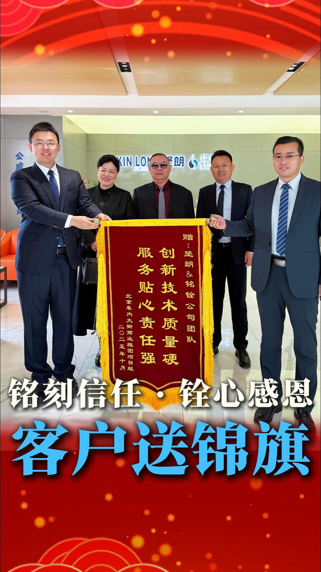 近日,北京阜成门内大街商业项目组团建设方董事长、总经理一行专程到访坚朗铭铨天津工厂,亲手送上沉甸甸的锦旗。这份认可,源于我们对产品工艺的极致追求、对技术服务的精益求精,更源于项目团队在施工中展现的专业与担当。 双方高管齐聚展厅,锦旗高悬,不仅是荣誉的见证,更是彼此信任的延续。随后,我们为客户送上5年质保终身服务承诺与象征幸福的格桑花礼,以匠心守护品质,以诚意温暖合作。感恩客户的选择与托付,坚朗铭铨始终秉持“品质为基、服务为魂“,与每一位伙伴并肩前行,用行动诠释:真正的卓越,是让客户放心,更让客户感动。